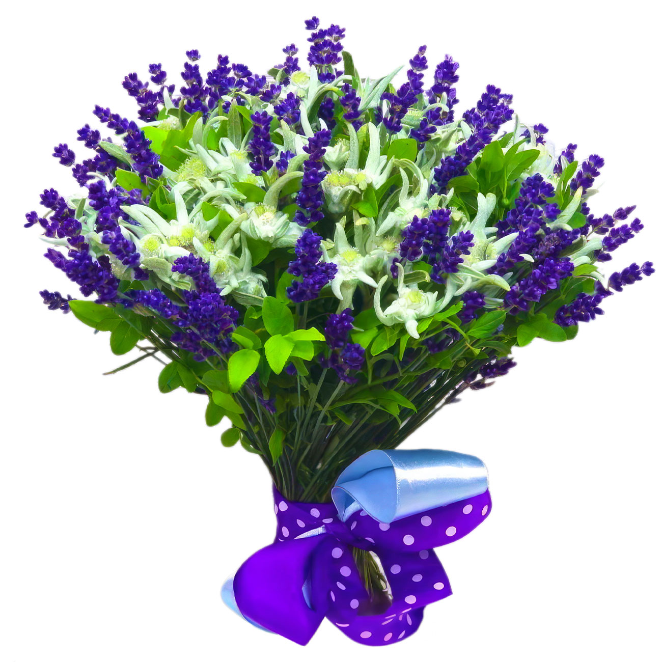 Эдельвейс, лаванда. Упаковка (лента, пленка, крафт, сетка, пленка матовая)