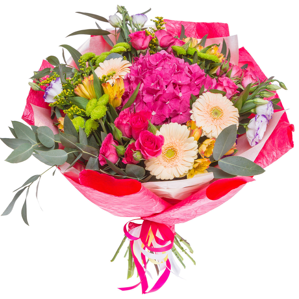 | Состав | Альстромерии, Герберы, Гортензии, Кустовые розы, Розы, Хризантемы, Эвкалипт, Эустомы |