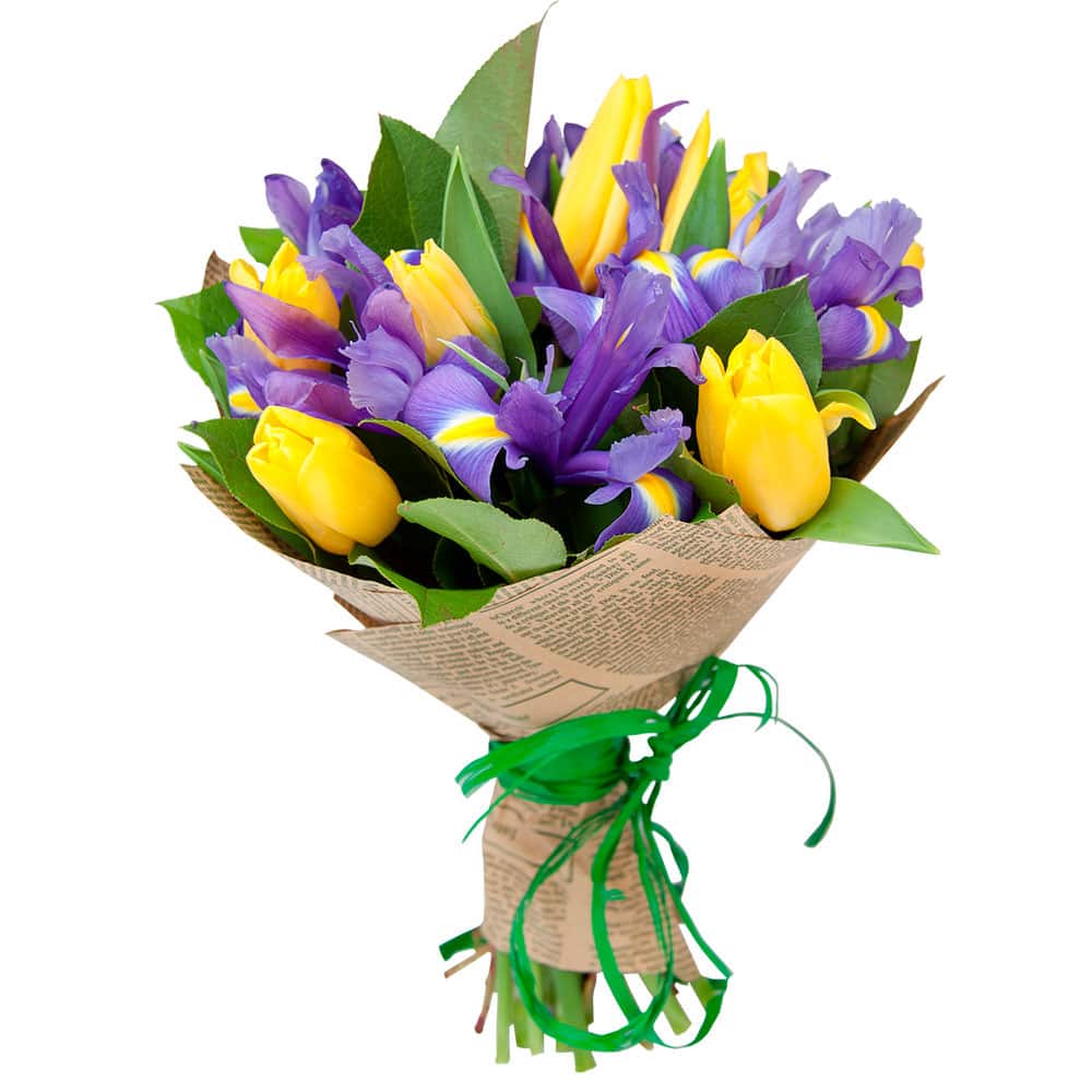 Ирис, тюльпан желтый. Упаковка (лента, пленка, крафт, сетка, пленка матовая)