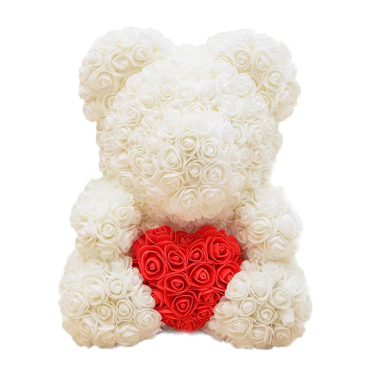 Мишка из роз бежевый с красным сердцем (40 см) с доставкой по г Свердловск: вы можете заказать подарок в интернет магазине «Флормания» по цене за 5990 руб.