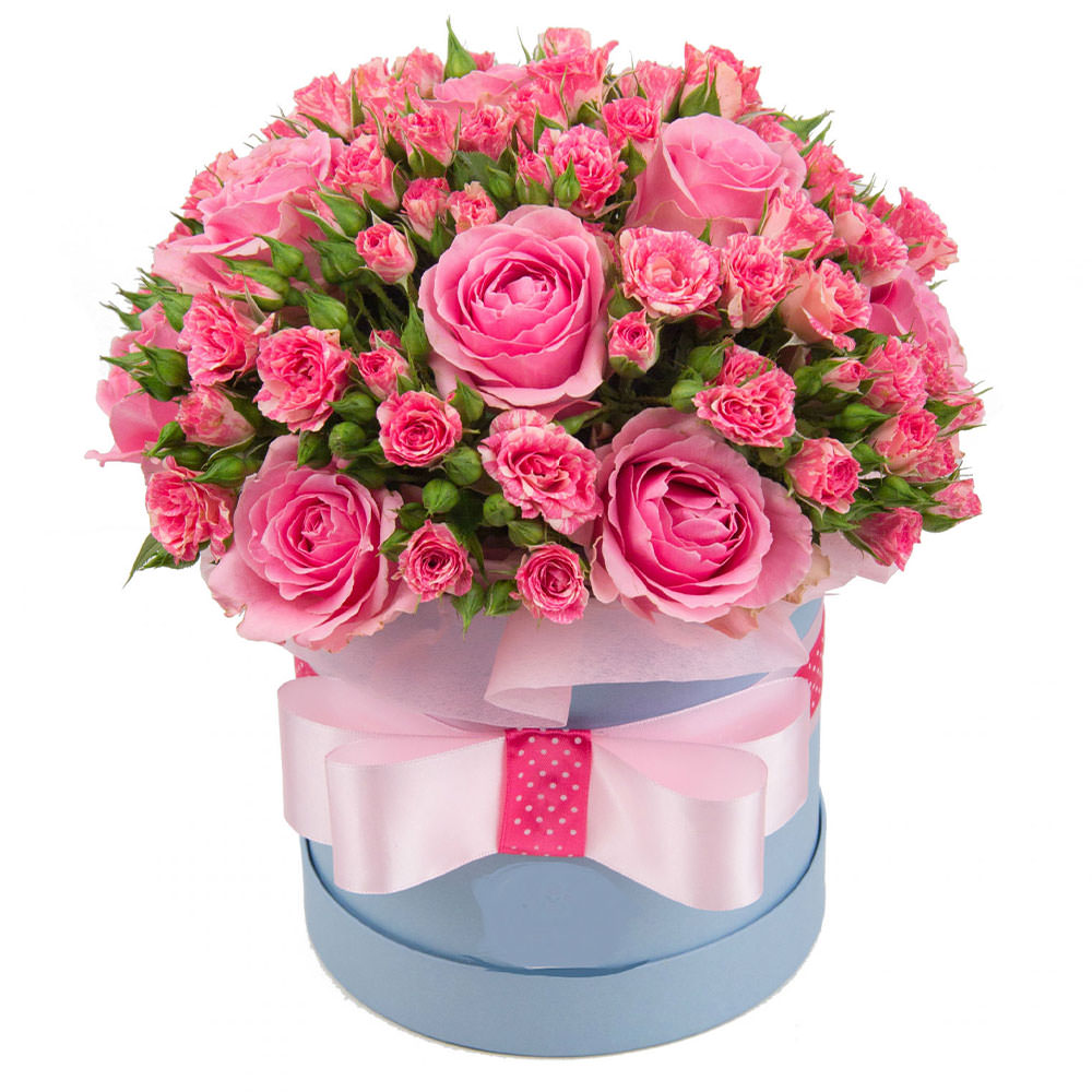 Цветы в коробке «Барби» с доставкой по г Свердловск: вы можете заказать букет в супермаркете цветов «Флормания» по цене от 2850 руб.
