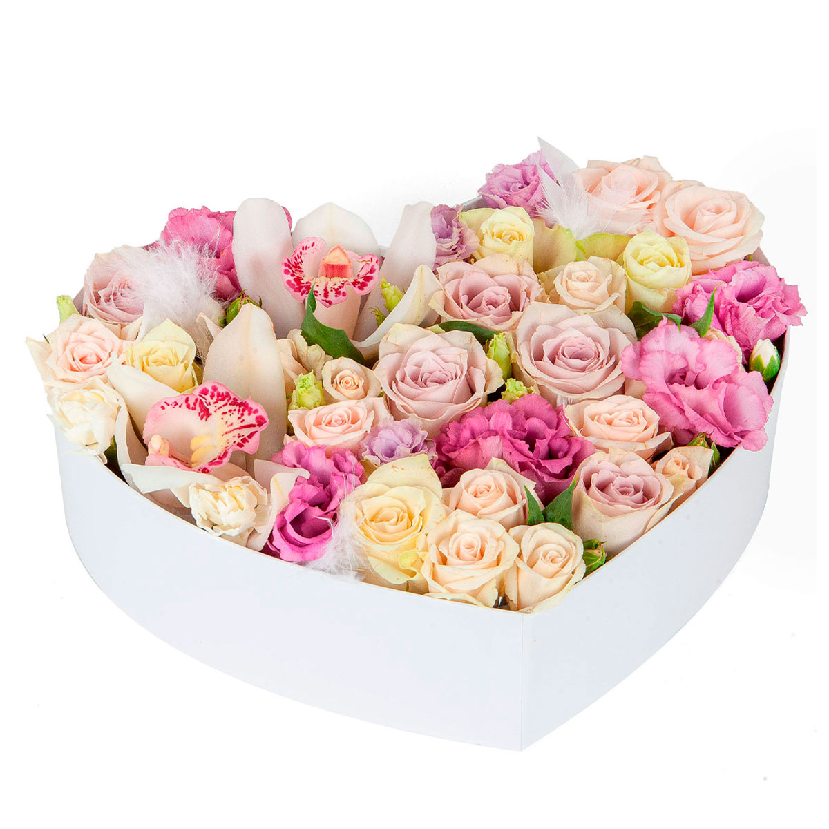 Цветы в коробке «Нежный флер» с доставкой по г Свердловск: вы можете купить букет в цветочном салоне «Флормания» по цене от 2850 руб.