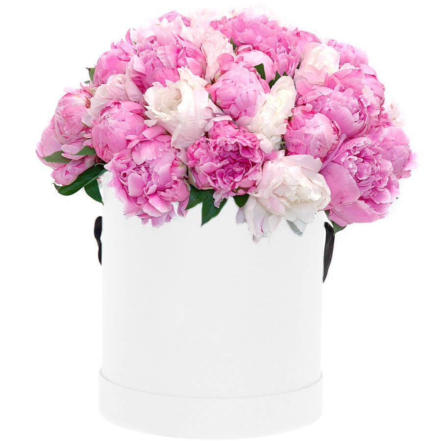 Пион микс (белый, розовый). Упаковка (шляпная коробка, квадратный бокс, коробка сердце, оазис)