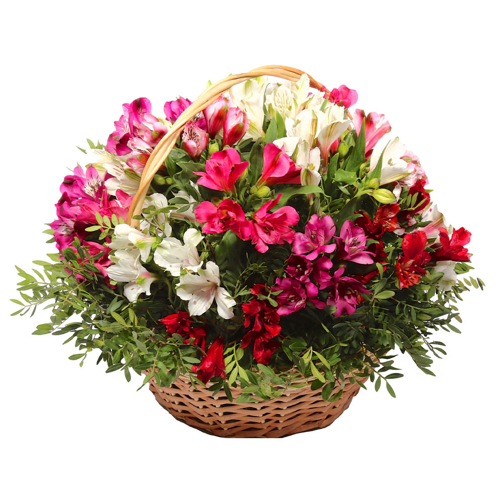Цветы в корзинке «Краски альстромерий» с доставкой по г Свердловск: вы можете заказать букет в цветочном супермаркете «Флормания» по цене от 3099 руб.