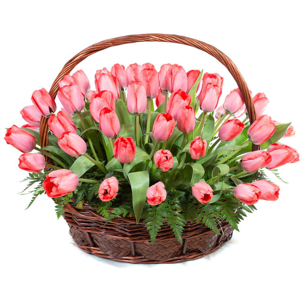 Цветы в корзинке «Розовые тюльпаны» с доставкой по г Свердловск: вы можете купить букет в салоне цветов «Флормания» по цене от 3099 руб.